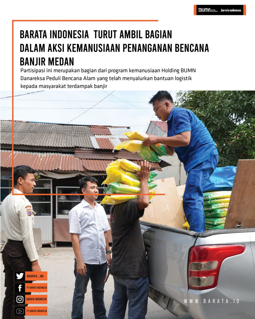 Melalui sinergi bersama Holding BUMN Danareksa, Barata Indonesia berkontribusi dalam penyediaan bantuan logistik berupa beras dan paket sembako yang disalurkan kepada sekitar 18.500 Kepala Keluarga (KK). Bantuan difokuskan bagi masyarakat di wilayah Ring-1 PT Kawasan Industri Medan (KIM), khususnya di lima kelurahan dan desa terdampak parah, yaitu Kelurahan Tangkahan, Mabar Hilir, Titipapan, serta Desa Pematang Johar dan Desa Saentis.